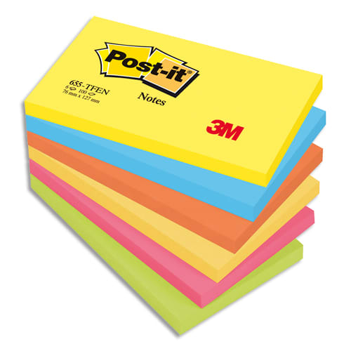 POST-IT Lot de 6 blocs repositionnables coloris énergique dimensions 76x127mm 655TF