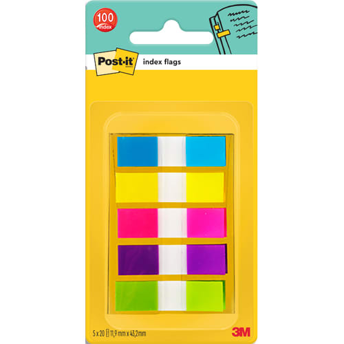 POST-IT Marque-pages POST-IT® étroits (5×20) couleurs néon dans dévidoir