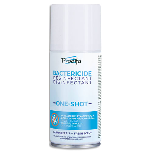 PRODIFA Aérosol 150 ml auto percutant bactéricide fongicide virucide pour le traitement de zones de 30m3