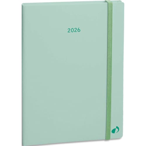 Agendas aux couleurs pastel et au toucher velouté. Couverture emboîtée rigide avec fermeture par élastique. Grille colorée. Grande zone de notes et to do. Ministre Color. Format : 16 x 24 cm. De Décembre à Décembre. 1 semaine/2 pages. De 8h à 20h, tranche RDV par heure. Vert.