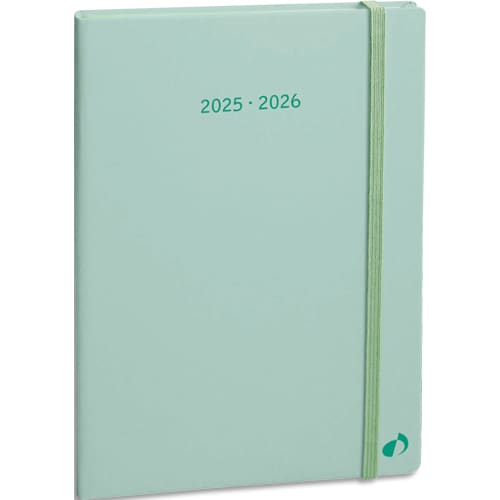 Agendas aux couleurs pastel et au toucher velouté. Plan Note. Couverture emboîtée rigide avec fermeture par élastique. Semainier avec 1 page hebdomadaire et 1 page de notes. Onglets mensuels. De Septembre à Décembre. Plan Note. Format : 15 x 21 cm. Vert.