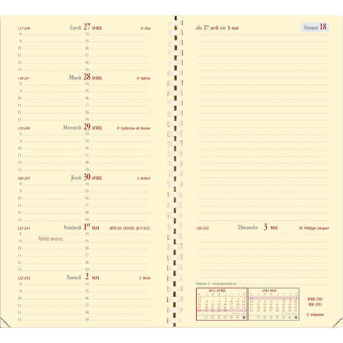 QUO VADIS Semainier RECHARGE ITALNOTE 8,8x17cm Spiralé décembre-décembre 60g