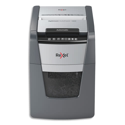 REXEL Destructeur de documents Optimum Auto+ 100X P-4,coupe croisée,4x28mm,100 feuilles,34 l,2020100XEU
