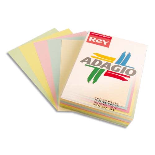 REY Ramette 50 feuilles x 5 teintes papier couleur pastel & vive ADAGIO assortis pastel&vifs A3 80g