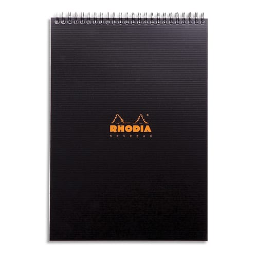 RHODIA Bloc Notepad spirale en tête en polypropylène 160 pages format 21×29,7cm.Coloris noir