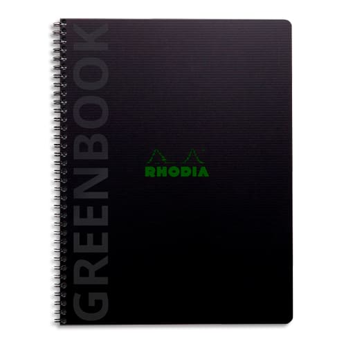 RHODIA Cahier à spirale polypropylène recyclé GREENBOOK 23,5×29,7cm 160 pages recyclées 90g Q5/5. Noir