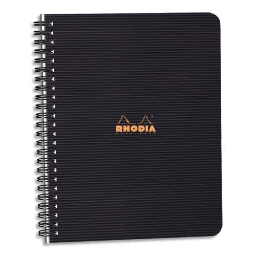 RHODIA Cahier spirale couverture Noire PP 16x21cm 160 pages 5×5 perforées 4 trous