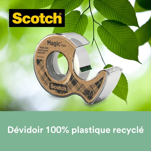 SCOTCH Dévidoir à main transparent en plastique recyclé 100% avec rouleau Magic recyclé 19mm x 20m