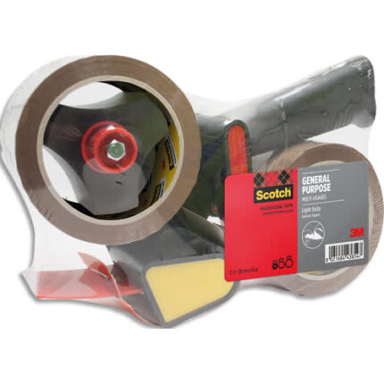 SCOTCH Pack Dévidoir d’emballage métal avec frein réglable et 2 rouleaux adhésif 50 microns Havane BP503