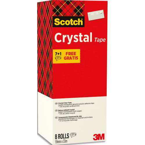 SCOTCH Tour de 8 rouleaux de ruban Crystal 19 mm x 33 m