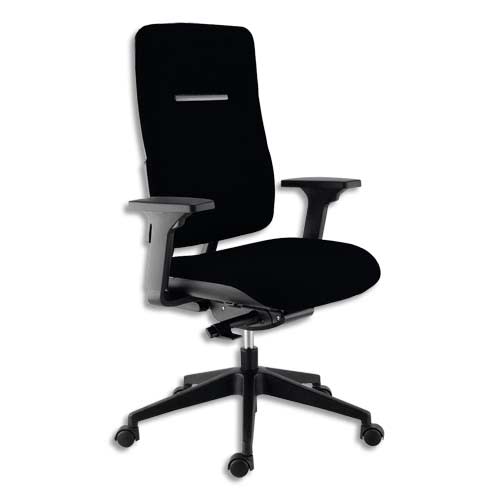 Siège Ergos haut dossier et assise en tissu Noir, à mécanisme synchrone, accoudoirs 3D réglables fournis