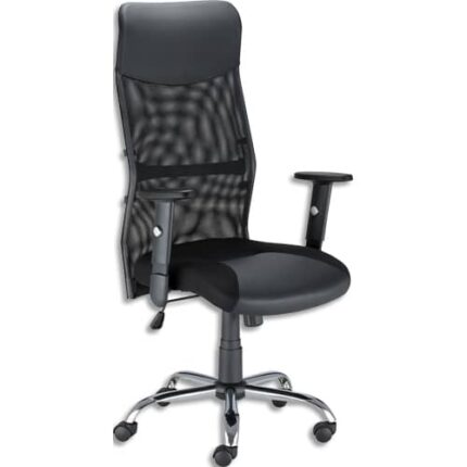 Fauteuil HIT dossier haut dossier mesh, appui tête rembourré simili cuir noir, mécanisme basculant