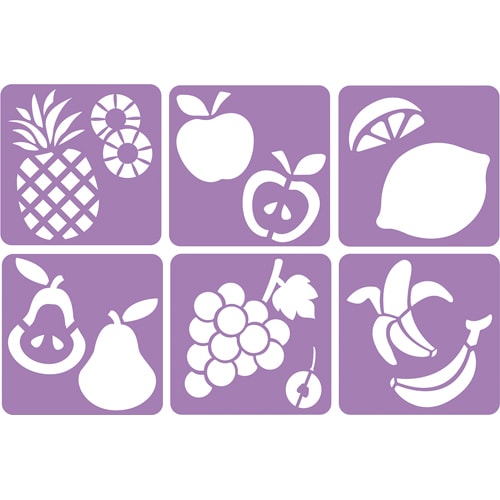 SODERTEX Pack de 6 Pochoirs Mon Verger en plastique – Dimensions : 14 x 14 cm, épaisseur 5 mm