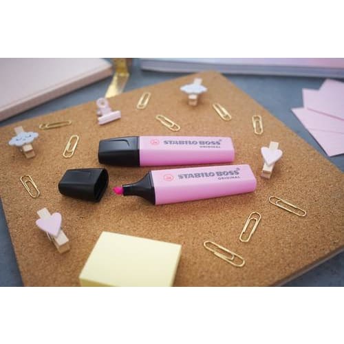 Décliné en 14 coloris pastel, STABILO BOSS ORIGINAL Pastel est le surligneur incontournable pour mettre en valeur les informations essentielles ou créer tout en douceur. STABILO BOSS ORIGINAL Pastel peut rester ouvert jusqu’à 4 heures sans sécher grâce à son procédé anti-dessèchement. La pointe biseautée du surligneur STABILO BOSS ORIGINAL Pastel offre 2 largeurs de tracé : 2 et 5 mm. Il permet de surligner avec un trait épais ou de souligner avec un trait plus fin vos documents, vos cours ou vos fiche de révisions, au travail, à l’école ou à la maison. Le surligneur pastel STABILO est idéal également pour ombrer, encadrer, décorer vos projets et pour vos loisirs créatifs comme le lettering, le bullet journal, … Ce surligneur pastel offre une capacité de surlignage de 350 mètres et son encre universelle à base d’eau diffuse une couleur pastel tendance.