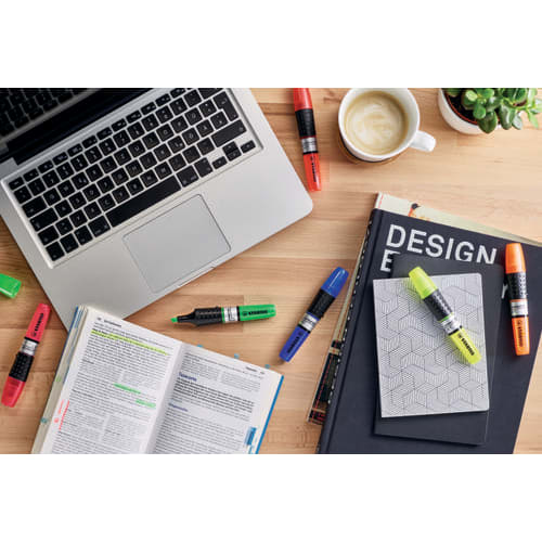 STABILO LUMINATOR est le surligneur à encre liquide haute performance et à la longévité exceptionnelle idéal pour le bureau. Ce surligneur STABILO est doté d’un réservoir d’encre XXL qui offre une capacité de surlignage de 500 mètres, bien supérieure aux standards habituels. Le grip de préhension large du surligneur STABILO LUMINATOR est structuré en forme de balle de golf pour permettre une prise en main agréable tout au long du tracé. Le niveau d’encre du surligneur peut être contrôlé à tout moment grâce à son corps transparent. La bille anti-roulis dont est équipé ce surligneur permet de le stopper avant qu’il ne tombe du bureau. Equipé d’une encre à base d’eau, STABILO LUMINATOR surligne intensément et de manière régulière jusqu’à la dernière goutte. Disponible en 6 couleurs fluo lumineuses, les surligneurs STABILO LUMINATOR peuvent rester ouvert jusqu’à 4 heures sans sécher sans avoir à remettre le capuchon : idéal pour rester 100% concentré. La pointe biseautée de ce surligneur fluo offre 2 épaisseurs de traits de 2 et 5 mm pour surligner avec un trait épais ou souligner avec un trait plus fin. STABILO LUMINATOR est fabriqué en Europe et son design a été primé à plusieurs reprises.
