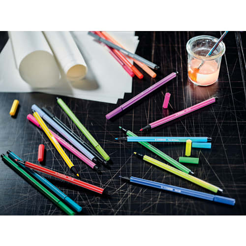 Fabriqué par STABILO en Europe et issu du savoir-faire Beaux-Arts de la marque, le feutre STABILO Pen 68 est une référence du coloriage depuis 1966. Ce feutre de dessin est doté d’une pointe ogive moyenne de 1 mm et son encre inodore à base d’eau se décline en 65 couleurs lumineuses et intenses. Polyvalent, le feutre STABILO Pen 68 est parfait pour dessiner, colorier, remplir de grands aplats de couleurs, créer des effets d’aquarelle ou réaliser des mandalas. Ce feutre de coloriage sera l’allié de toutes vos créations, à l’école ou à la maison, pour un usage amateur ou professionnel. Grâce à un procédé anti-dessèchement, le feutre STABILO Pen 68 peut rester ouvert jusqu’à 24 heures sans sécher sans avoir à remettre le capuchon : parfait pour créer sans aucune limite !