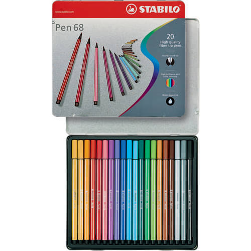 STABILO Pen 68 feutre de dessin pointe moyenne – Boîte métal de 20 feutres – Coloris assortis