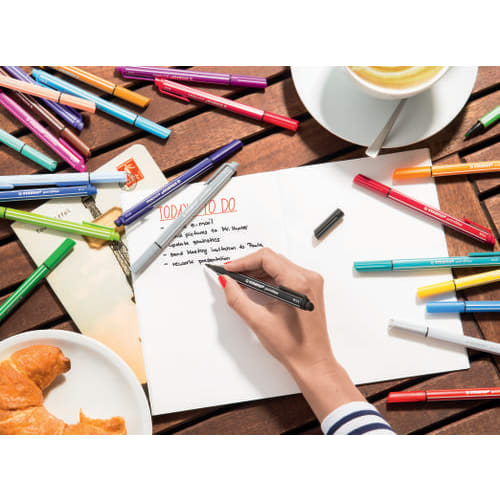 STABILO pointMax est le stylo feutre pointe moyenne aux 42 couleurs lumineuses fabriqué en Allemagne. La pointe nylon robuste de ce stylo feutre offre un tracé de 0,8 mm, et permet une écriture confortable et fluide même en cas d’usage intensif. Multi-usages, les stylos-feutres STABILO pointMax sont parfait en cours et au bureau pour écrire, annoter, souligner, encadrer… Ce stylo couleur est idéal pour prendre des notes, réaliser des fiches de révision ou des schémas. Grâce à sa pointe moyenne, ce stylo-feutre accompagnera également tous vos projets créatifs à la maison : dessin, bullet journal, lettering… Doté d’une encre à base d’eau sans odeur et d’une technologie anti-dessèchement, STABILO pointMax peut rester ouvert jusqu’à 24 heures sans sécher sans avoir à remettre le capuchon. Le clip d’accroche dont est doté ce stylo permet de l’emporter partout.