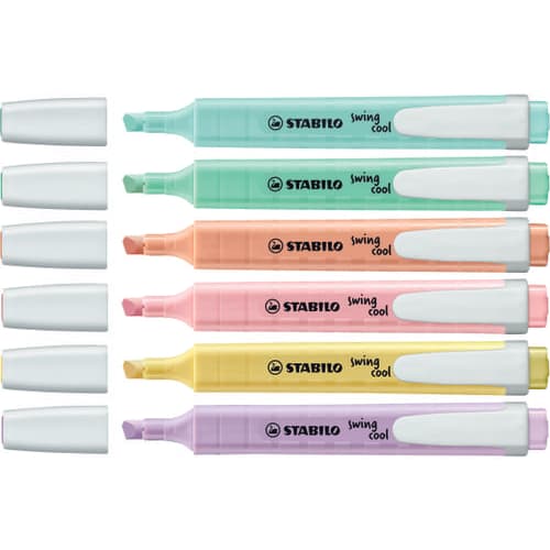 STABILO swing cool Pastel – Pochette de 6 surligneurs pastel – Menthe/Jaune/Pêche/Rose/Lilas/Turquoise