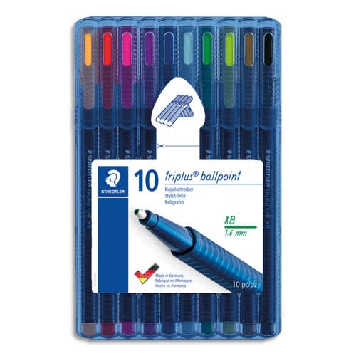 STAEDTLER Etui de 10 stylos bille Triplus Ball 437 XB, pointe métal large 0,7 mm. Assortis