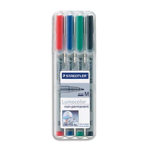 STAEDTLER Pochette de 4 feutres multi-usages LUMOCOLOR Encre non permanente assortis. Pointe moyenne 1mm