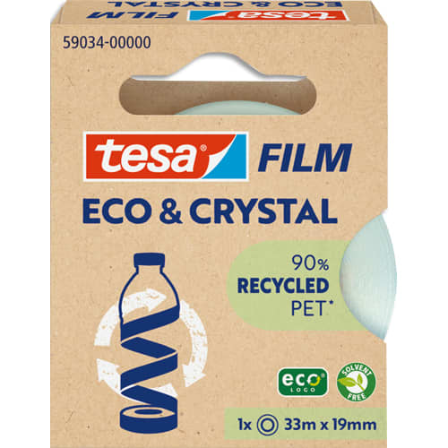 TESA Boîte individuelle 1 rouleau adhésif ECO&CRYSTAL en pet à 90% 33m x 19mm