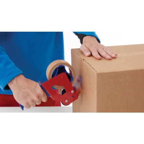 VISO Dévidoir avec frein corps plastique, lame en métal pour rubans adhésifs de 66 et 100 m Blanc Rouge