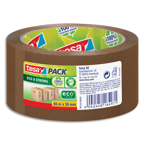 TESA Ruban adhésif d’emballage 100% de plastique recyclé marron Eco & Strong sans solvant 66mx50 mm