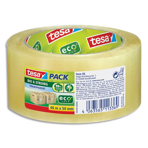 TESA Ruban adhésif d’emballage transparent Bio & strong sans PVC ni solvant 66 m x 50 mm