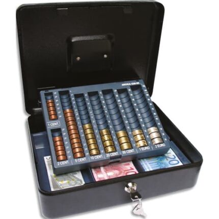 RESKAL Caisse à monnaie+billet COMFORTA acier,livrée avec 2 clés-L30xH9xP24 cm, 1poignée couvercle
