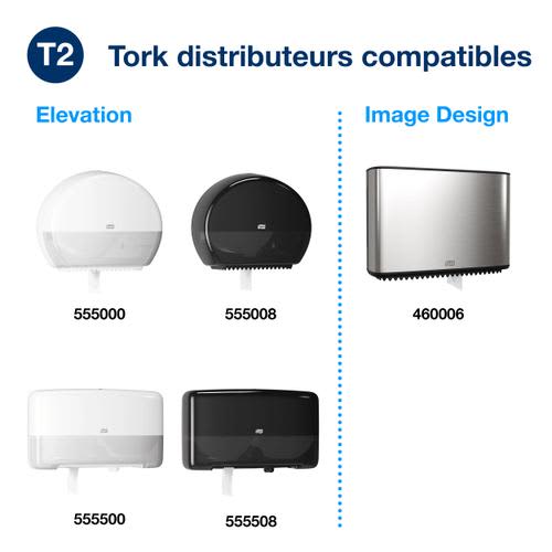 TORK Colis de 12 Bobines Papier toilette Mini Jumbo Premium doux 2 plis L170 m x D18 cm Blanc logo Bleu