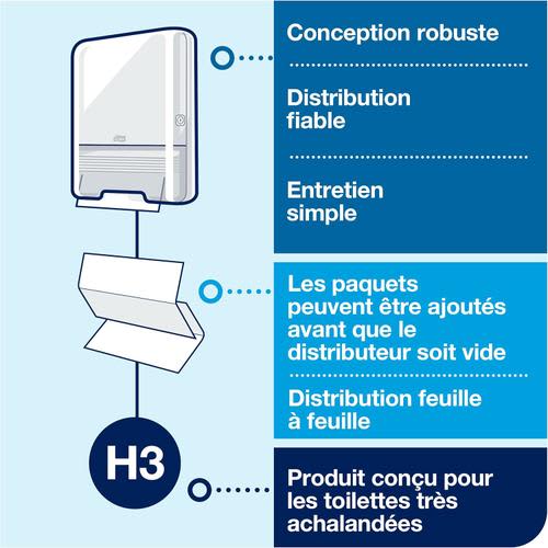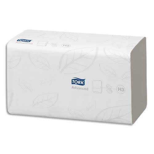 TORK Colis de 15 Paquets de 250 Essuie-mains Advanced 2 plis en V délitable Laurier – Ft 23 x 23 cm Blanc