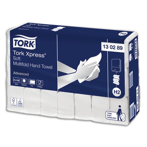 TORK Colis de 21 paquet 180 feuilles Essuie-mains Xpress interfoliés doux Advanced 2 plis Z 24 x 21,3 cm