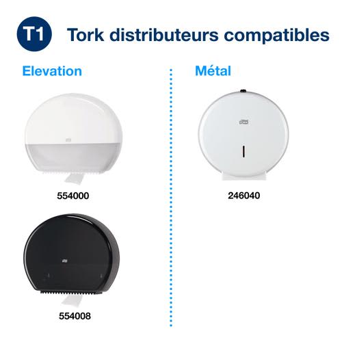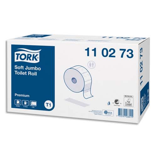 TORK Colis de 6 Bobines de Papier toilette Maxi Jumbo Premium doux 2 plis L360 m x D26 cm Blanc logo Bleu