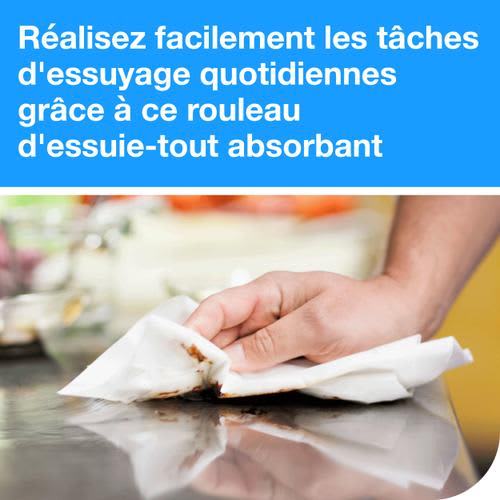 En cuisine, la propreté des surfaces exige un papier résistant et absorbant. Ce rouleau d’essuie-tout durable 2 plis, au grand pouvoir d’absorption, permet de réaliser toute une série d’essuyages quotidiens. Résistant, il éponge les liquides et les graisses tout en éliminant facilement les restes de nourriture. Moins de feuilles sont nécessaires pour accomplir ces tâches, vous pouvez ainsi sécher les surfaces plus efficacement tout en produisant moins de déchets.