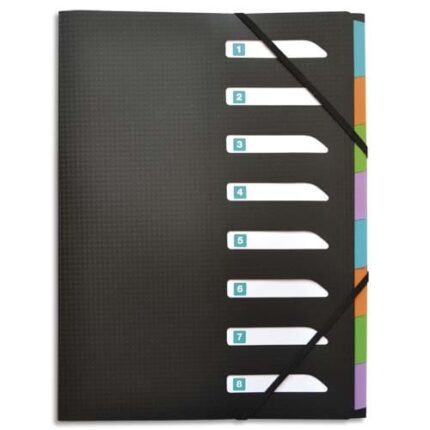 EXACOMPTA Trieur en polypropylène 8 compartiments A4. Fermeture par élastique. Coloris assortis
