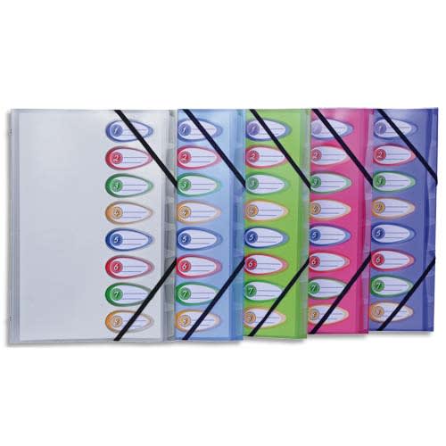 EXACOMPTA Trieur avec élastique Iderama en carte 7/10e. 12 compartiments. Coloris assortis.
