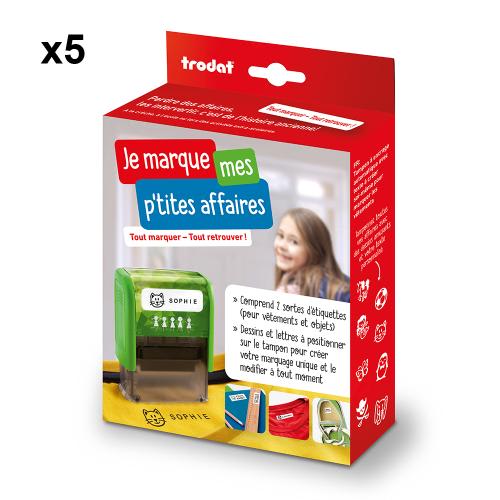 TRODAT Tampon Je marque mes affaires inclus lettres, dessins,étiquettes,bande themo,cassette encre noire