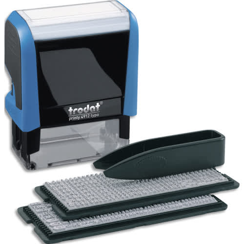 TRODAT Timbre à faire soi-même 4 lignes-Printy 4912 4.0 Bleu. 2 plaq.compo+1 recharge Noir. Police 3-4mm