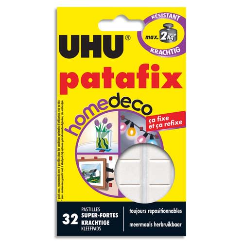 UHU Etui de 32 pastilles PATAFIX Blanche Home Déco résistance 2kg