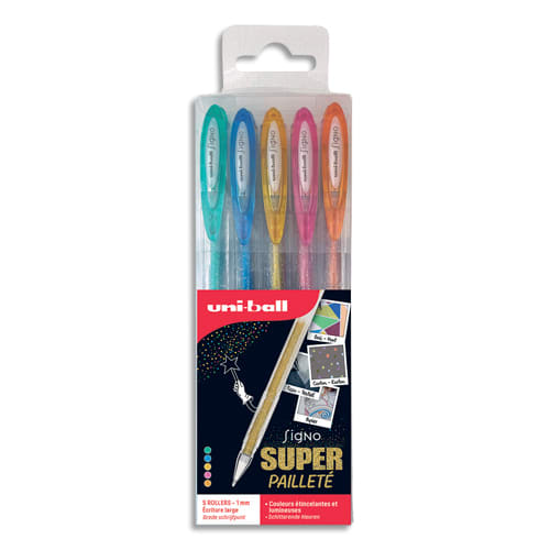 UNI-BALL Pochette de 5 stylos bille à encre gel Electrics, couleurs pailletées assorties UM120SP-5