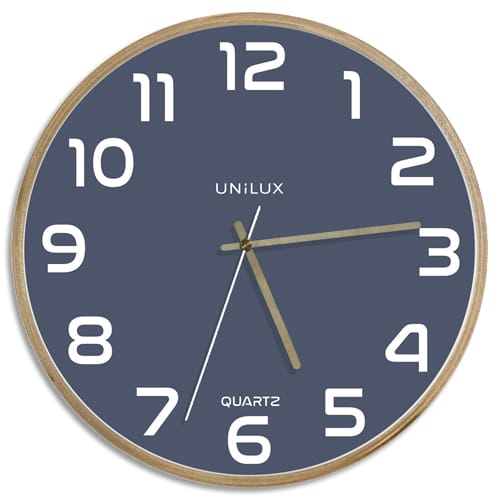 UNILUX Horloge murale Baltic, cadre en bois. Fonctionne avec 1 pile AA fournie. Diamètre 31,5 cm. Bleu