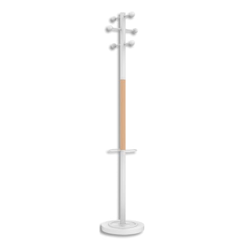 UNILUX Portemanteau Access 6 patères arrondies. Bois FSC. H: 175 cm. Porte-parapluies. Blanc bois