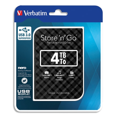 VERBATIM Disque dur 3,5 » USB 3.0 Store ‘n’ Save 4To Noir 47685