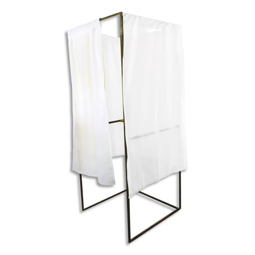 Isoloir simple et rapide à monter avec tablette amovible et rideaux ignifugés