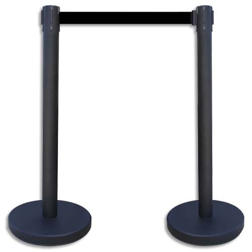 VISO Poteau Noir Reco + sangle Noire rétractable de 2 métres avec frein – Base D32 cm, hauteur 91 cm