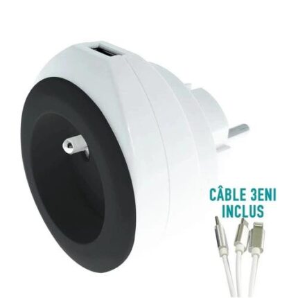 WATT & CO Multiprise triplite WattBall, 2 prises 16A+1 prise 6A+1 USB 2,1A Rouge