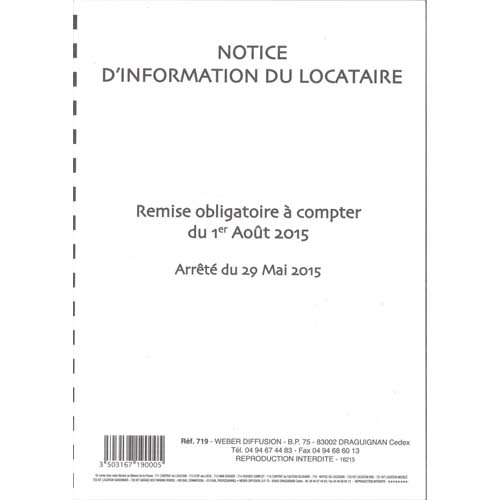 Elle doit être remise au locataire obligatoirement depuis le 1er août 2015 (arrêté du 29 mai 2015) (8 pages).