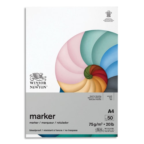 WINSOR & NEWTON Bloc de 50 feuilles de papier BLEEDPROOF A4 75g. Papier spécifique pour Promarker