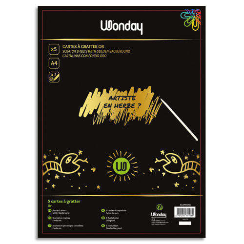 WONDAY Crée’Up Sachet de 5 cartes à gratter A4 or + 1 stylet en bambou